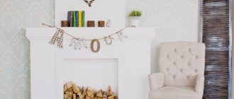 False fireplaces. By the way, if ready-made purchased options are not available, you can come up with and make an imitation fireplace yourself. This does not require special skills; you can easily assemble a beautiful structure yourself from cardboard, boards, drywall, or any available materials. To decorate the resulting structure, you can choose from: wallpaper, paint, plastic panels, tiles, stone or its imitation. Well, in order for such a dummy to look decent, it should be properly decorated inside and outside, and if possible, assemble an interesting imitation of fire.