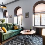 If you do not want to dismantle the doors and windows, you need to choose suitable curtains that emphasize the design idea of this design. You can use roller blinds, classic or Roman blinds. But in any case, they should be long, reaching the floor, and near the window reaching the level of the window sill.