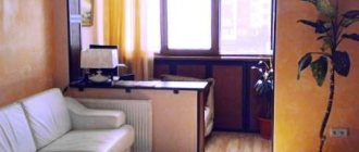Glazing also performs another important function. If you use high-quality materials with improved thermal insulation characteristics, you can remove the ceilings between the room and the loggia, thus expanding the room, as shown in the photo. In the case of a loggia, this will be easier to do, since it itself looks like a room.