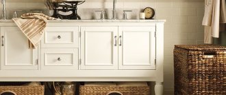 For the Swiss chalet, modern, hi-tech and loft styles, you should choose metal and wooden elements - they create a harmonious space and, moreover, combine perfectly with each other. You can combine white walls and ceiling with white fixtures, as well as a wooden countertop under a metal chrome or copper sink. This combination will always look great in these styles.