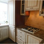 Поскольку кухня должна быть не просто красивой, но и функциональной, практичной, то украшать окно длинными гардинами не стоит. Они будут быстро пачкаться и визуально уменьшат помещение.