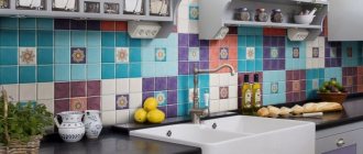 Учитывайте при монтаже такие пространственные решения, как необходимость вытянуть визуально пространство “фартука” или наоборот, его расширить. Об этом, конечно, надо позаботиться заранее, ещё на стадии выбора панно. И, если есть необходимость, лучше покупать панно из прямоугольных плиток. При их вертикальном расположении, они увеличат высоту “фартука”, при горизонтальном расположении – растянут его в ширину.