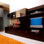 Безупречное выполнение лицевых поверхностей модульного гарнитура подкупает качеством и эстетической привлекательностью. Такая мебель подчеркивает статус обладателей, которые предпочитают стильное направление в оформлении интерьера. Массив березы, обработанный морилкой и покрытый акриловым лаком, будет радовать домочадцев безупречной эксплуатацией не один десяток лет.