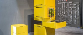 - Площадь помещения. В небольшой квартире, например студии или хрущевке, эргономичней использовать встроенную технику, неглубокие навесные шкафчики и функциональную мебель – складные столы и стулья, барные стойки.