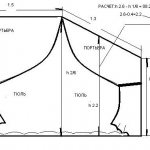 - 1 — деталь для спинки, выкраиваем так, чтоб долевая нить ткани шла сверху вниз, как на рисунке, таких деталей нужно 2 шт, но я забыла вторую схематически изобразить, поэтому учтите, что вторая деталь спинки помещается под двумя деталями №2 ( на рис. есть свободное место), но при этом она кроится не по долевой, а боком, и эта часть будет внутренней на детали спинки.