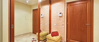 Подобный эффект поможет добиться и отражающая поверхность, обустроенная на внутренней стороне входного дверного полотна. Отличной идеей выступает применение шкафа с зеркальными дверцами.